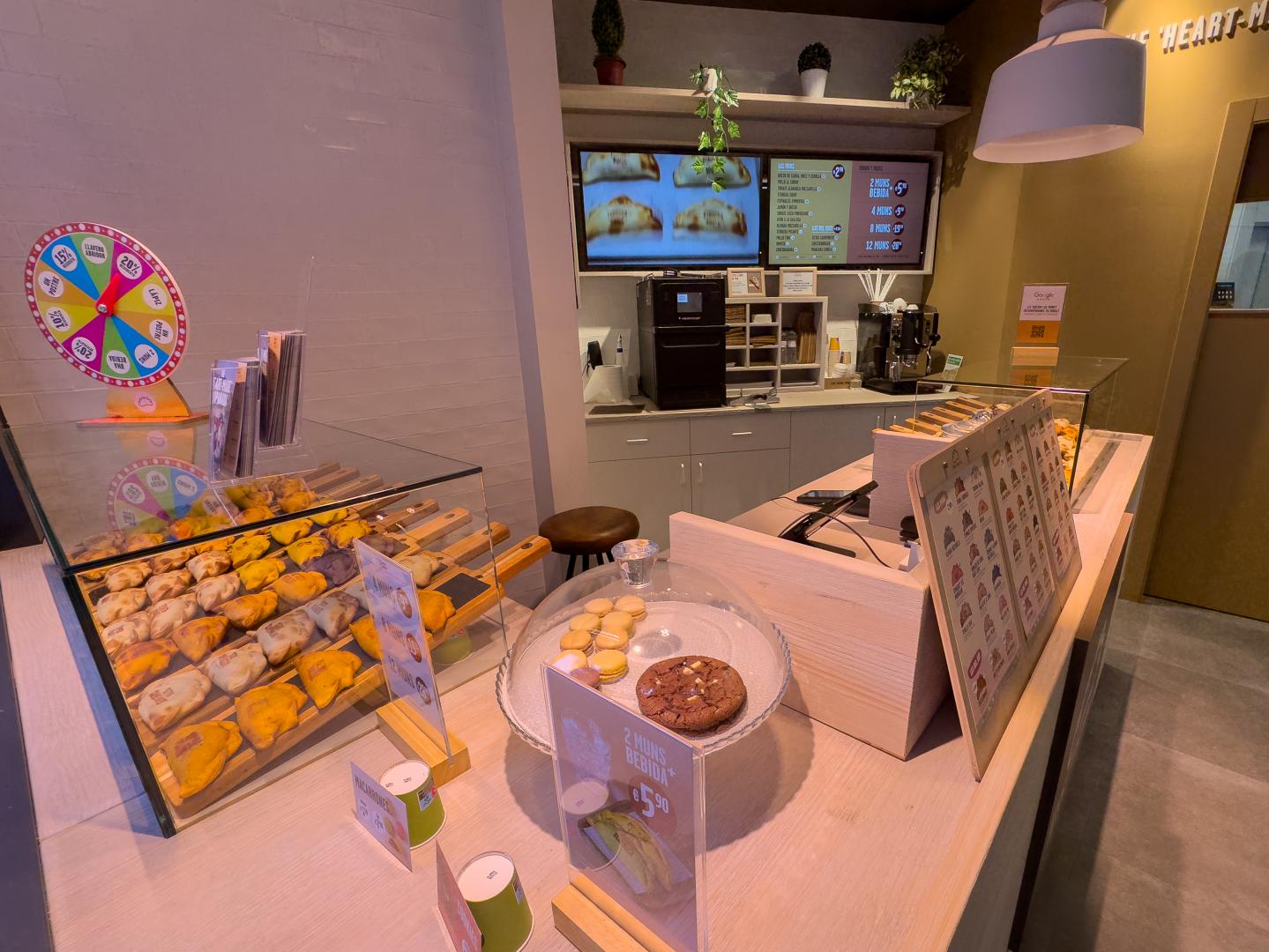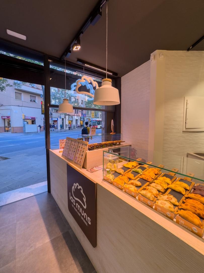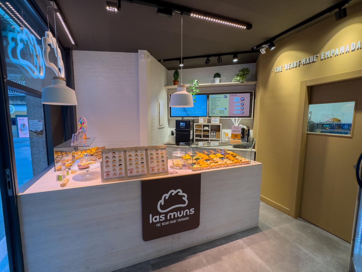 El diseño del local de Las Muns hace un uso eficiente del espacio disponible. A pesar de las limitaciones, el área de servicio está bien organizada y ofrece suficiente espacio para la preparación y venta de empanadas. La disposición del mostrador y la cocina abierta permite una operación fluida y eficiente, esencial para la venta rápida y el servicio al cliente.